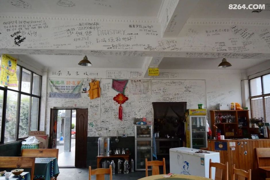 ¼ûÏÂͼ£º²èÂí¿ÍÕ»²ÍÌüÄÚµÄǽÉÏÂúÊÇͿѻ£¬Á¬ºáÁºÒ²Î´ÄÜÐÒÃ⣬ÖÐÎÄ¡¢Ó¢ÎÄ¡¢º«ÎÄ£¬×Ðϸ¿´º«ÎÄÆ«¶à¡£ËµÃ÷ÔÚÎôÈÕÕâÀïÊÇÒ»ÌõÂÃÓÎÈÈÏߣ¬ÏÖÔÚÓÉÓÚÒßÇéÓ°Ï죬ÓοͺÜÉÙ¡£