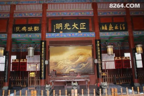 突出的大斗拱很有宋朝古建的风貌。因为宋代建筑大师李诫编写的《营造法式》,我们直到今天仍然能够比较详细地知道宋代各类各等级建筑的营建规制和工艺。正因为有这本书的传世,今天的人才能够复原宋代古建的原貌。。这是大门后的仪门,是府衙的正门,门前有一锣一鼓,每次府尹外出出发之前,侍从就敲响锣后,然后队伍开始出去。而鼓的作用大概就是供告状的人击鼓鸣冤用。然而,老百姓击鼓鸣冤时除了会受到门卫的阻拦外,即使敲响了鸣冤鼓,官员升堂审案,然而却仍要以打扰尊者之类的理由打20大板,然后开始受理案件。