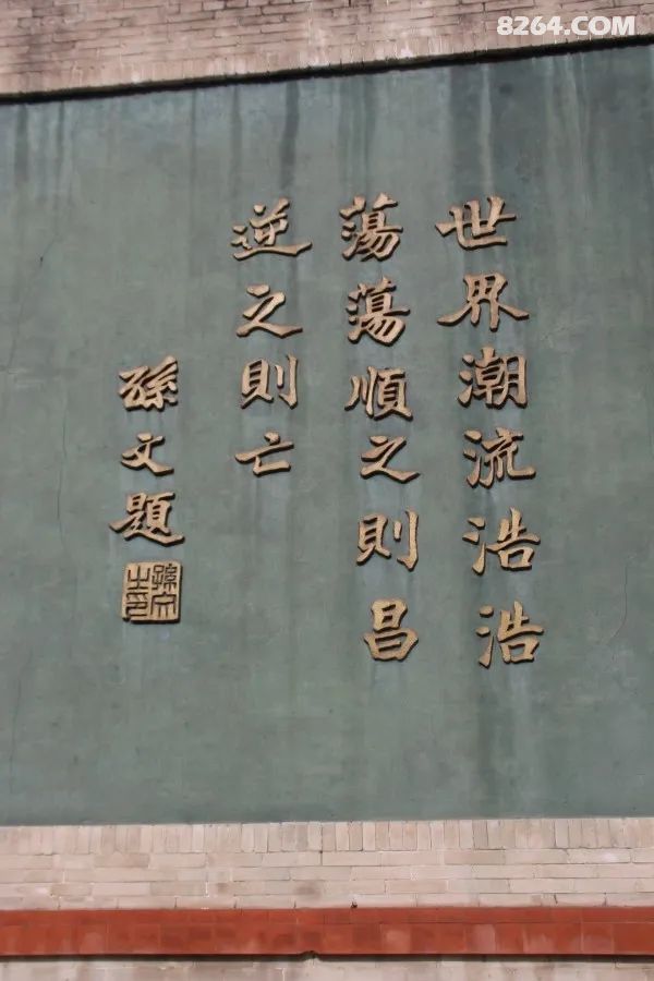 ¼ÍÄî±®ÖÐÑëÏâǶ×ÅËïÖÐɽÏÈÉúµÄÌâ×Ö¡°ÊÀ½ç³±Á÷ºÆºÆÌÀÌÀ£¬Ë³Ö®Ôò²ý£¬ÄæÖ®ÔòÍö¡£¡±