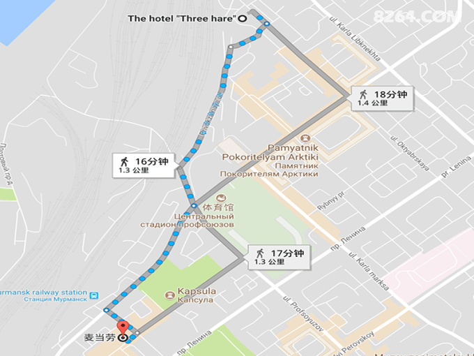 ÉÏͼÖÐ4¸öÓúìÏß±êʾ³öÀ´µÄµã´ÓÉÏÍùÏÂÒÀ´ÎÊÇ£º1£¬°¢ÁÎɳµñÏñ&¶þÕ½¼ÍÄî±®£¨Alyosha£©£»2£¬ÁÐÄþºÅºËÄÜÆÆ±ù´¬£¨The icebreaker Lenin£©£»3£¬ÊÀ½ç×î±±µÄÂóµ±ÀÍ£¨Makdonalds£©£»4£¬ ±±¼« Ȧ³ÇÊÐ×ø±ê±®£¨Pamyatnyy znak na vyezde v gorod£©¡£