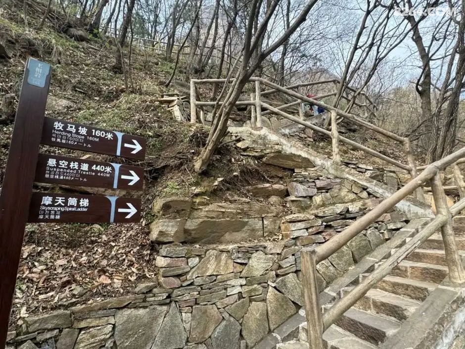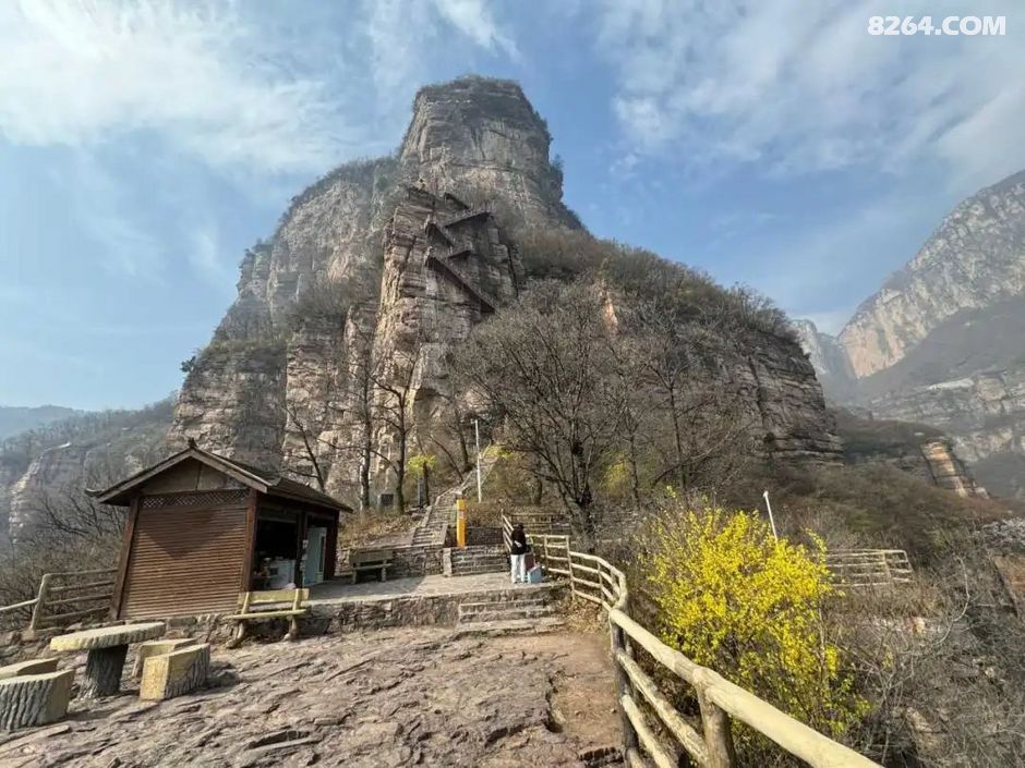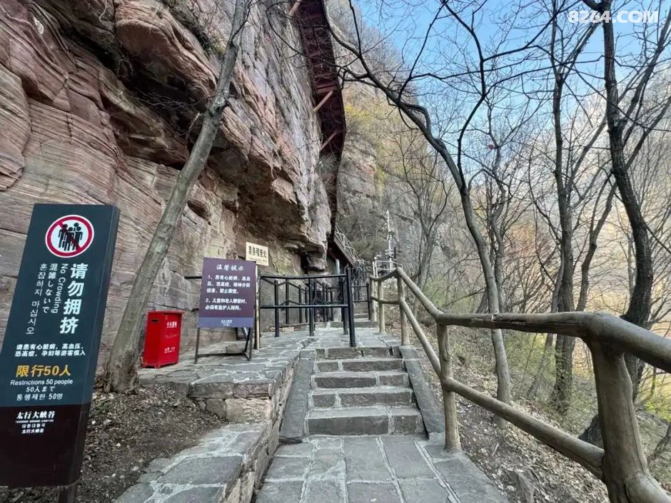 ¼ûÏÂͼ£ºÐü¿ÕÕ»µÀÆðʼµã£¬Õ»µÀ·ÖÁ½¶Î£¬ÏÞÐÐ50ÈË£¬µ«½ñÌìÓοͺÜÉÙ¡£