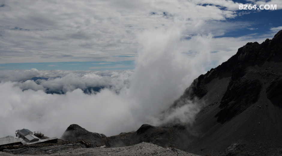 ÔÚ4680¹Û¾°Ì¨£¬¿ÉÒÔ¿´ÖÜΧµÄ±ù´¨¡£É½¶¥9Ôµ׵ĻýÑ©²»¶à£¬µ«±ù´¨ÊÇËļ¾³£×¤¡£