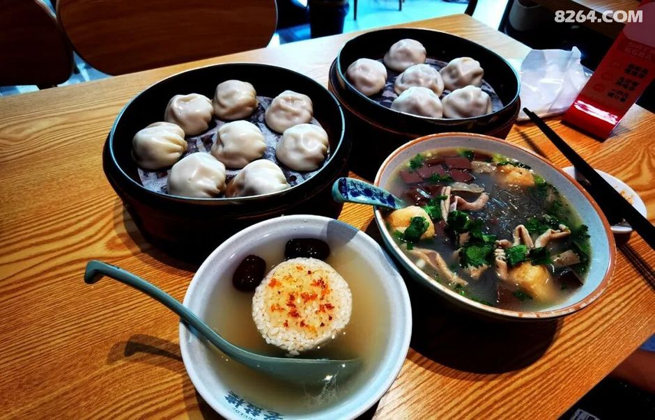 虽然南京没什么好吃的东西,我还是比较怀念南京的鼓楼汤包,算是不多的食物里最能接受的之一,第二天的早餐自然是要安排上。鼓楼汤包是家连锁店,离酒店不远的地方有一家,店面比较小,但是很整洁,里面坐的人好像都是街坊,和店里的服务员聊家长里短的。我们点了原味汤包、蟹黄汤包、鸭血粉丝汤和桂花酒酿,此店的味道中规中矩,粉丝汤量很大,第一次来南京的苗妈很喜欢。