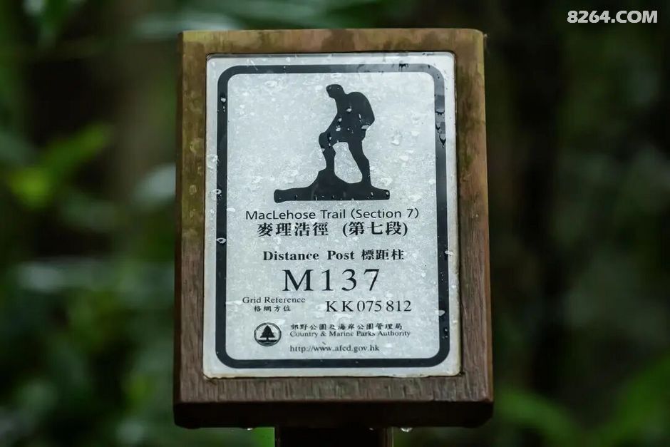 它全长100公里,共分十段,西起西贡北潭涌,东至屯门。1979年初,驻港英军仅用约9个月便将其开辟出来,最初用于军事训练,据说当时英军需在24小时内走完全程。 如今,它已成为无数徒步爱好者用脚步丈量香港的朝圣之路。 01 必须知道的标距柱 麦理浩径全程有标距柱,共200个,约每500米一个。 关于标距柱的解释:标距柱特别为使用郊游径、树木研习径及长途远足径之远足人士而设,让他们沿途均可得悉所处位置。遇有紧急事故,远足人士可利用就近标距柱上的资料说明其位置,以协助搜索及救援行动